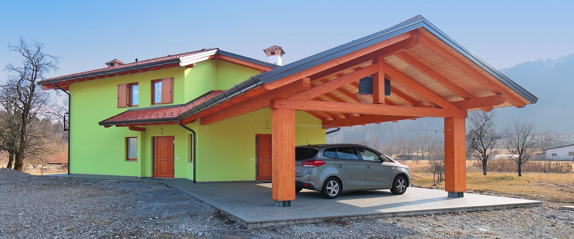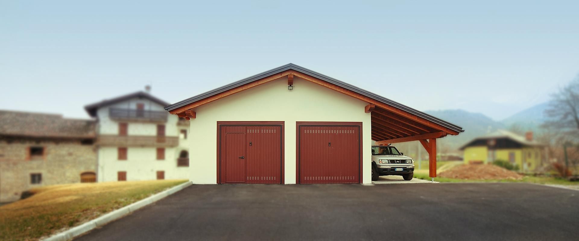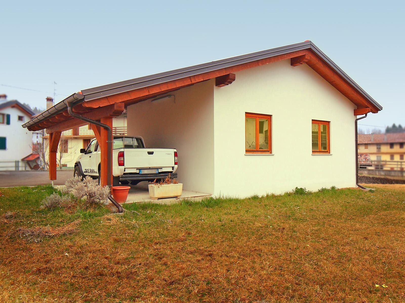Garage legno prefabbricato realizzato con pannelli in legno X-Lam nel Comune di Verzegnis.