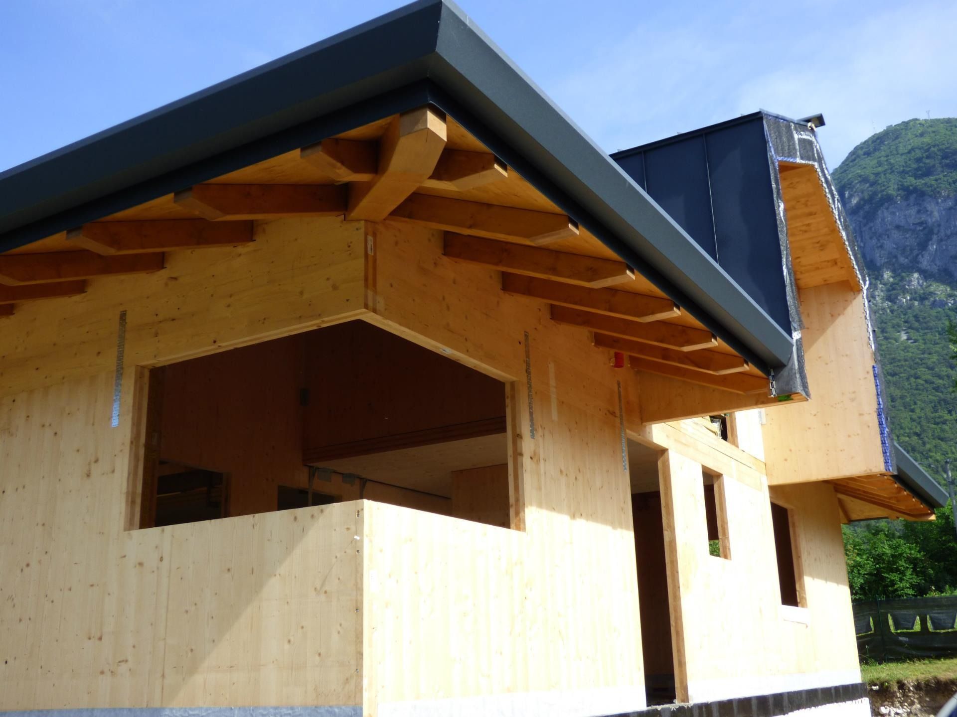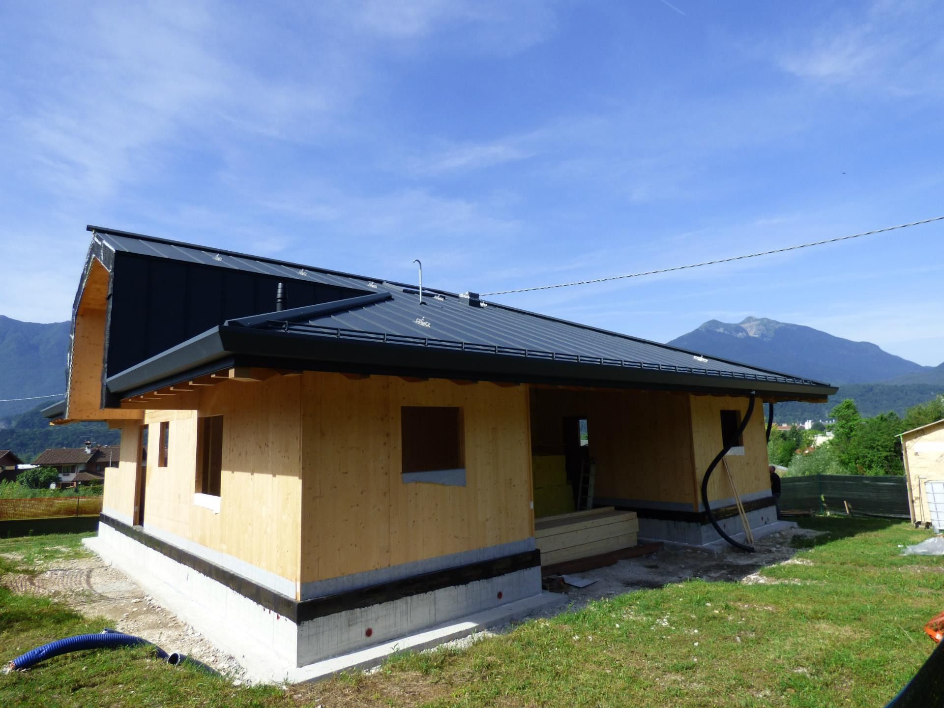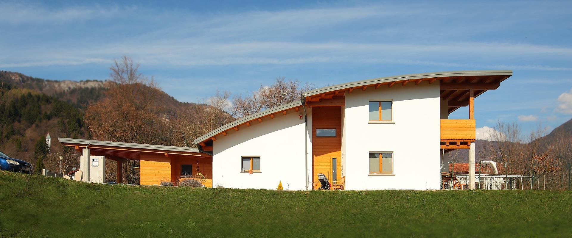 Monofamiliare in legno costruita nel comune di Tolmezzo mediante pannelli "X-Lam" di spessore 123 mm a 3 strati e di 137 mm a 3 strati.