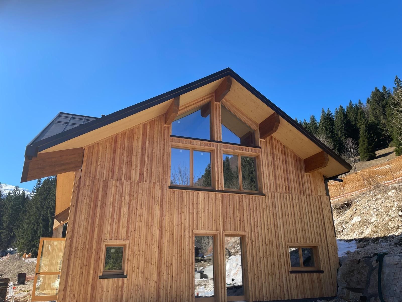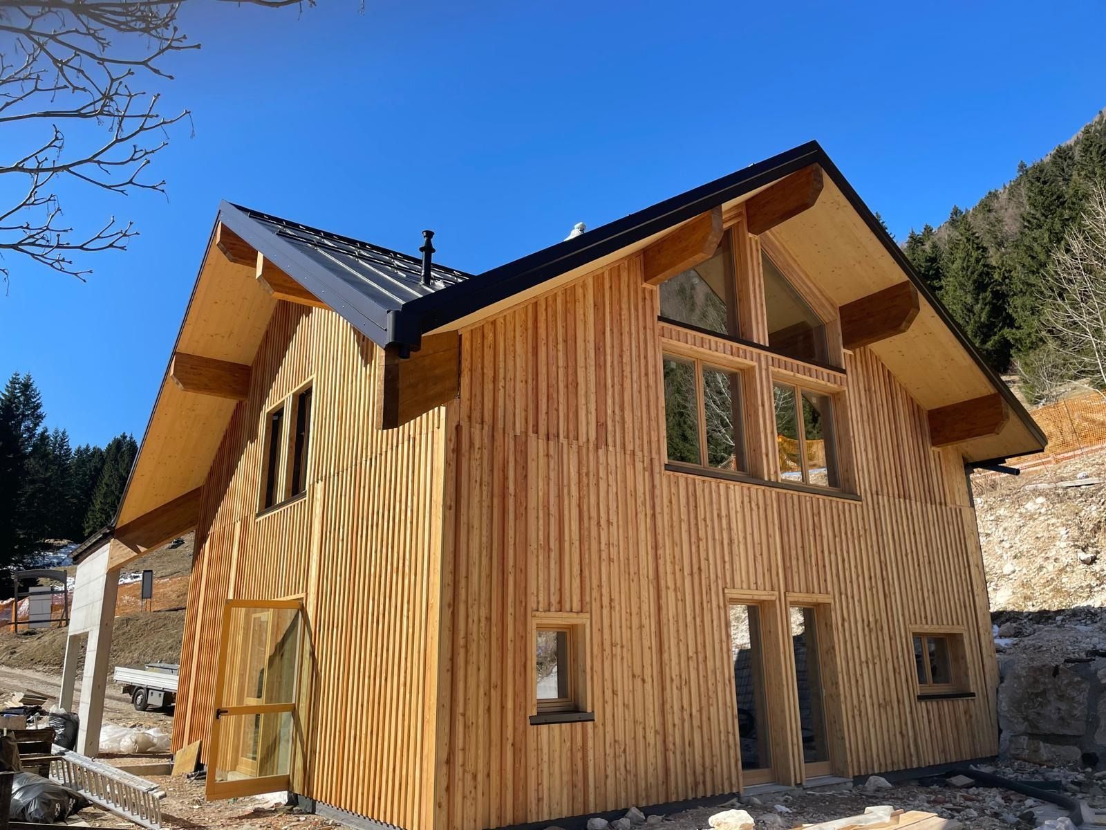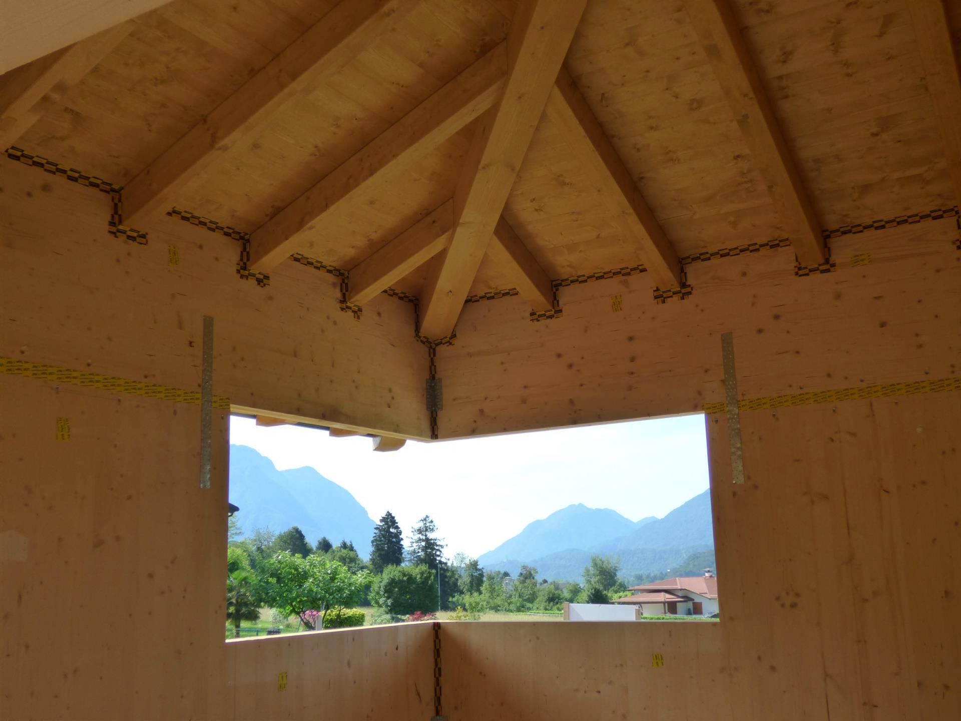 Monofamiliare in legno costruita nel comune di Tolmezzo mediante pannelli "X-Lam" di spessore 123 mm a 3 strati e di 137 mm a 3 strati.