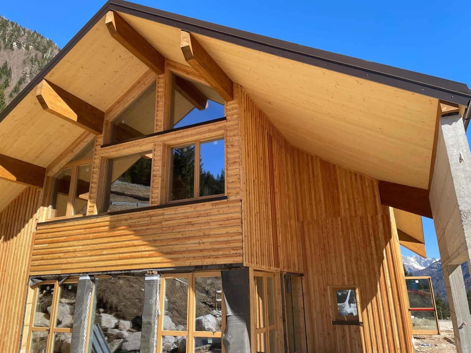 Il tutto avendo particolare cura nei dettagli, sia strutturali che per ciò che concerne l’isolamento termico ed acustico, garantendo ai futuri beneficiari dell’alloggio una permanenza in un ambiente sano ed anche economicamente sostenibile, grazie ad un notevole risparmio energeticoLa struttura è costituita da PARETI A TELAIO (basamento in larice, montanti in bilama ed isolante in lana di roccia), perlinato di abete internamente e TAVOLE DI LARICE A SCANDOLA esternamente. Per il manto di copertura è stato scelto un freno al vapore posizionato sopra la perlina, uno strato di isolante in lana di roccia, la guaina traspirante, una doppia listellatura ed una LAMIERA FINTO COPPO alla finitura della copertura.