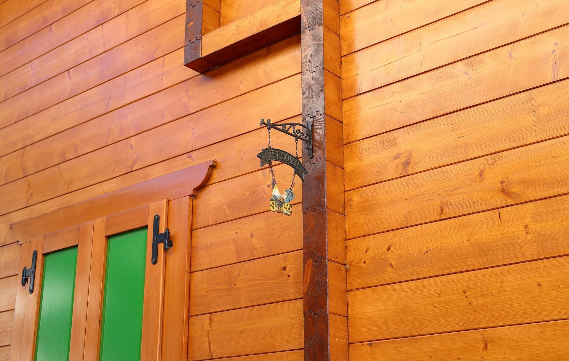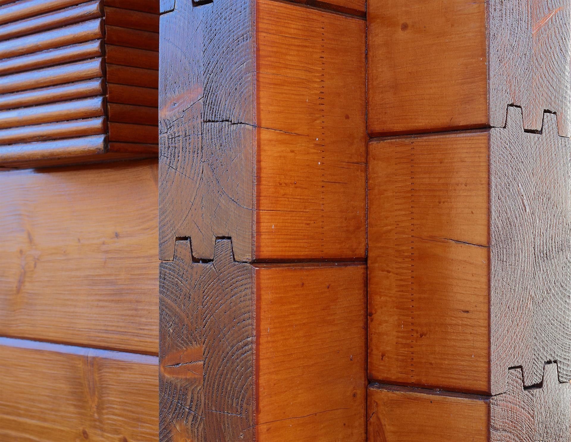 E' stata costruita con il sistema "Block-House" che consiste nella sovrapposizione di travi (in questo caso si tratta di travatura in legno bi-lamellare di abete di spessore 12 cm) con particolare lavorazione, allestiti orizzonatalmente e fissati tra di loro mediante apposita ferramenta.