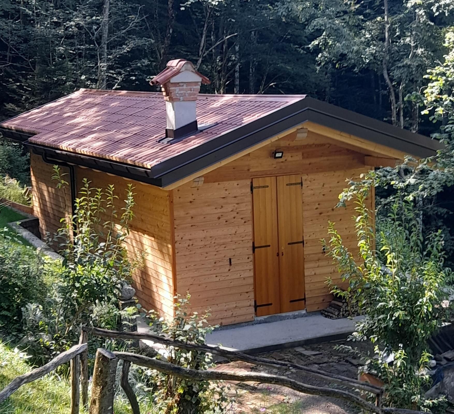 La struttura è costituita da PARETI A TELAIO (basamento in larice, montanti in bilama ed isolante in lana di roccia), perlinato di abete internamente e TAVOLE DI LARICE A SCANDOLA esternamente. Per il manto di copertura è stato scelto un freno al vapore posizionato sopra la perlina, uno strato di isolante in lana di roccia, la guaina traspirante, una doppia listellatura ed una LAMIERA FINTO COPPO alla finitura della copertura.
